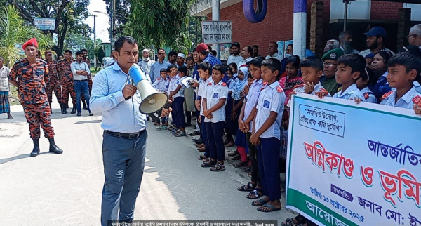 "সমম্বনিত উদ্যোগে, প্রতিরোধ করি দুর্যোগ" এই প্রতিপাদ্যকে সামনে রেখে দিনাজপুরের ফুলবাড়ীতে উপজেলা প্রকল্প বাস্তবায়ন অধিদপ্তর ও উপজেলা প্রশাসনের উদ্যোগে আন্তর্জাতিক দুর্যোগ প্রশমন দিবস উপলক্ষে ফায়ার সার্ভিস কর্মিদের মহড়া প্রদর্শন ও আলোচনা সভা অনুষ্ঠিত হয়েছে।