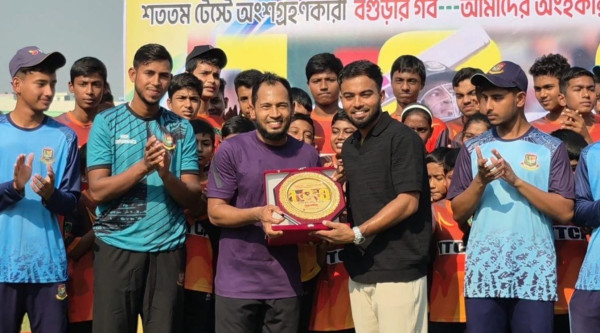 বৃহস্পতিবার (১৮ ডিসেম্বর) দুপুরে তরুণ ক্রিকেটারদের উদ্যোগে আয়োজিত অনুষ্ঠানে বগুড়ার এই কৃতি সন্তানকে ফুল ও ক্রেস্ট দিয়ে সম্মান জানান জাতীয় দলের বর্তমান তারকা ও আরেক বগুড়াবাসী তৌহিদ হৃদয়। পরিচিত মুখ, চেনা মাঠ আর শৈশবের স্মৃতিতে ভরা পরিবেশে সংবর্ধনা যেন পরিণত হয় এক আবেগঘন পুনর্মিলনে।