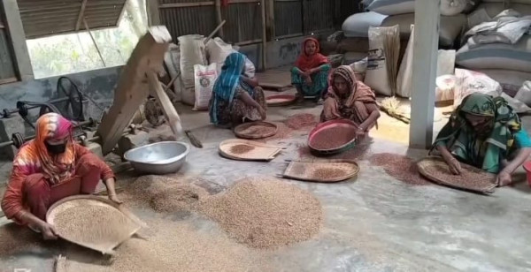 শফিকুলের বাড়ির উঠানে দেখা গেলো দুটি বিদ্যুৎচালিত ঢেঁকি, যেগুলো কাঠ দিয়ে তৈরি এবং রেললাইন আকৃতির ঘরের মধ্যে স্থাপন করা। এসব ঢেঁকিতে প্রতিদিন ১৫০ কেজি পর্যন্ত লাল চাল উৎপাদিত হচ্ছে। বর্তমানে সেখানে পাঁচজন স্থায়ী ও সাতজন মৌসুমি শ্রমিক কাজ করছেন, যাদের মধ্যে চারজন নারী শ্রমিক ধান ভাঙ্গা, চাল বাছাইসহ বিভিন্ন পর্যায়ের কাজে নিয়োজিত। রয়েছে একটি অফিসঘর, যেখানে একজন ম্যানেজার অর্ডার নিচ্ছেন অনলাইনে। এর মাধ্যমেই সব খরচ মিটিয়ে লাখ টাকা আয় করেন তিনি।