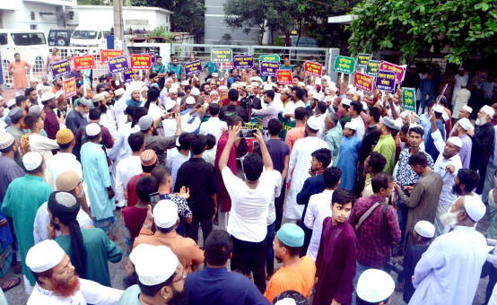 তারা আরো বলেন, 'আমরা বিভিন্ন সময়ে মসজিদের জায়গাটুকু সরকারী নিয়ম মেনে বরাদ্দের জন্য আবেদন করি। কিন্তু অত্র মসজিদের জায়গা মসজিদকে না দিয়ে অন্য সংস্থাকে বরাদ্দ দেয়। তাই আজকে অত্র এলাকার গণ্যমান্য ব্যক্তি ও মুসল্লীগণ এর তীব্র প্রতিবাদ জানাচ্ছি।’