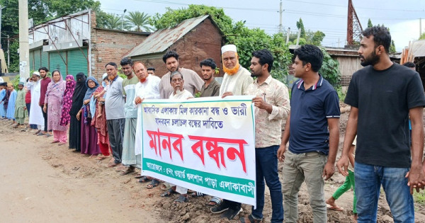 এসময় বক্তারা বলেন, তাদের বসবাসের এই আবাসিক এলাকায় একটি পলিথিন কারখানা রয়েছে যা পরিবেশ ও এলাকাবাসীর স্বাস্থ্যের জন্য অত্যন্ত ঝুঁকিপূর্ণ হয়ে উঠেছে।