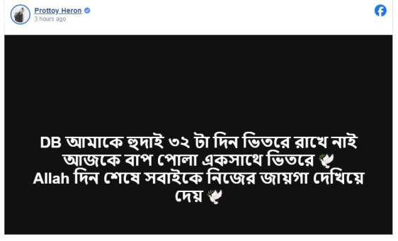 গণহত্যা মামলায় তৌহিদ আফ্রিদি গ্রেপ্তার, ফেসবুকে প্রতিক্রিয়া দিয়েছেন প্রত্যয় হিরণ