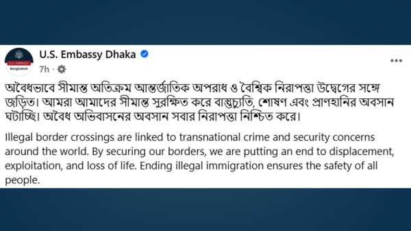 সেখানে বলা হয়, সীমান্ত সুরক্ষা নিশ্চিত করার মাধ্যমে বাস্তুচ্যুতি, শোষণ এবং প্রাণহানির মতো ঘটনা বন্ধ করা হচ্ছে। একই সঙ্গে অবৈধ অভিবাসনের অবসান সবার নিরাপত্তা নিশ্চিত করতে সাহায্য করছে।