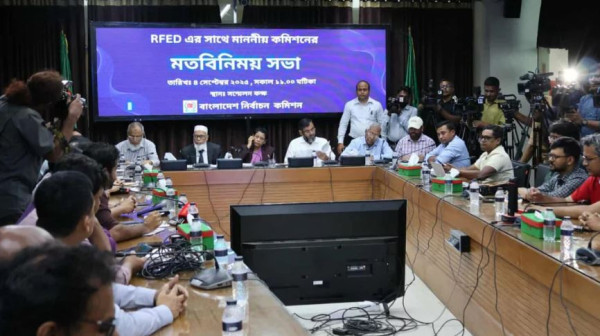 বৃহস্পতিবার (৪ সেপ্টেম্বর) রাজধানীর আগারগাঁওয়ে নির্বাচন কমিশন ভবনে অনুষ্ঠিত নির্বাচন কমিশন (ইসি) নিয়ে কর্মরত সাংবাদিকদের সংগঠন ‘রিপোর্টার্স ফোরাম ফর ইলেকশন অ্যান্ড ডেমোক্রেসি’র (আরএফইডি) সঙ্গে মতবিনিময় সভায় বাংলাদেশ নির্বাচন কমিশন এ সংক্রান্ত নীতিমালা প্রকাশ করছে।
